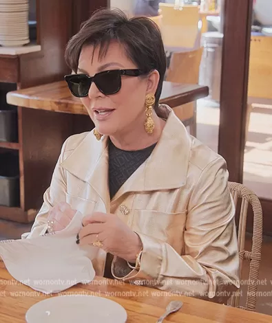 Kris Jenner (played by Kris Jenner) on The Kardashians on Hulu was spotted wearing this black Fendi logo catsuit on The Kardashians on episode 'Bucket List Goals' (1x09) in Jun 2022. Kris's Catsuit is the Crew Neck Full Onesie by Fendi x SKIMS.