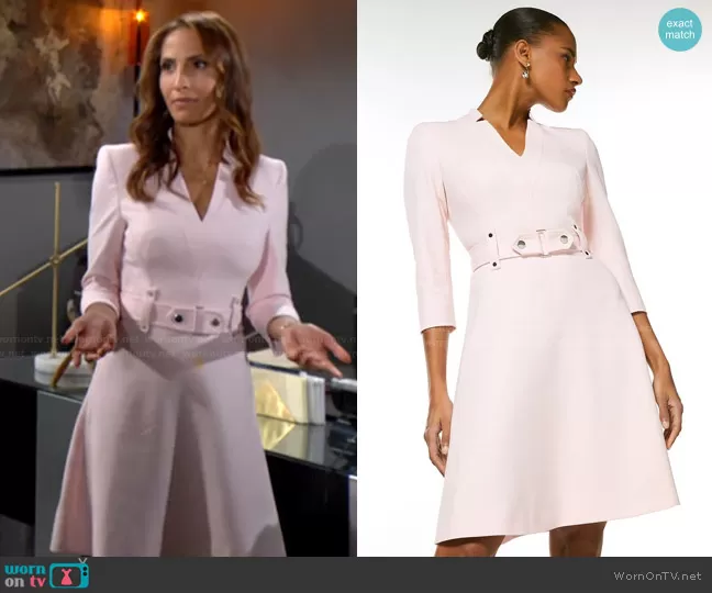 Lily Winters (played by Christel Khalil) on The Young and the Restless on CBS was spotted wearing this light pink belted a-line dress on The Young and the Restless on Jun 09 2022's episode. Lily's Dress is the Forever Cinch Waist A-Line Dress by Karen Millen.
