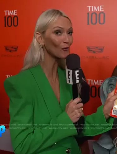 on E! News on E! was spotted wearing this green blazer on E! News Daily Pop on Jun 09 2022's episode. 's Jacket is the Multi-Seamed Single-Breasted Blazer by Sergio Hudson.