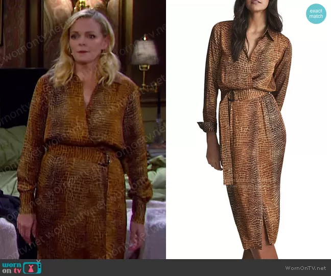 Belle Brady (played by Martha Madison) on Days of our Lives on Peacock was spotted wearing this croc print dress on Days of our Lives on Jun 10 2022's episode. Belle's Dress is the Emile Dress by Reiss.