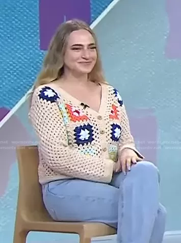 on Today on NBC was spotted wearing this beige crochet cardigan on Today on Jun 10 2022's episode. 's Sweater is the Crocheted Cardigan by Aqua.