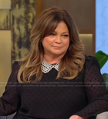 on Tamron Hall Show on ABC was spotted wearing this black dot sheer top with pearl collar on Tamron Hall Show on Jun 13 2022's episode. 's Top is the Faux-Pearl Collar Top by Cece.