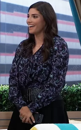 Brook Lynn Quartermaine (played by Amanda Setton) on General Hospital on ABC was spotted wearing this printed wrap top on General Hospital on Jun 15 2022's episode. Brook Lynn's Top is the Azza pleated printed crepe de chine wrap top by IRO.