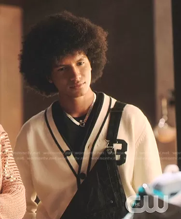 Lino (played by Donovin Miller) on Tom Swift on The CW was spotted wearing this white contrast trim cardigan on Tom Swift on episode '...And Nine Inches of Danger' (1x03) in Jun 2022. Lino's Sweater is the Numbered Jacquard Cardigan by Zara.