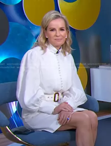 Dr. Jennifer Ashton on Good Morning America on ABC was spotted wearing this white belted mini dress on Good Morning America on Jun 15 2022's episode. Jennifer's Dress is the Luminous Mixed Ribbon Dress by Zimmermann.