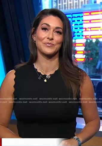 Erielle Reshef on Good Morning America on ABC was spotted wearing this Erielle Reshef’s black scalloped trim dress on Good Morning America on Jun 25 2024's episode. Erielle's Dress is the Scalloped Knit Dress by Zara.
