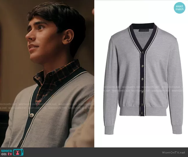 Victor Salazar (played by Michael Cimino) on Love Victor on Hulu was spotted wearing this grey contrasting trim cardigan on Love Victor on episode 'Agent Of Chaos' (3x06) in Jun 2022. Victor's Sweater is the Varsity Tipped Cardigan by Saks Fifth Avenue COLLECTION.