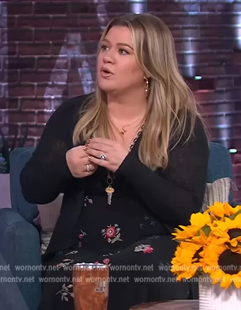 Kelly Clarkson on The Kelly Clarkson Show on NBC was spotted wearing this black floral maxi dress on The Kelly Clarkson Show on Jun 20 2022's episode. Kelly's Dress is the Clarabelle Dress by Johnny Was.