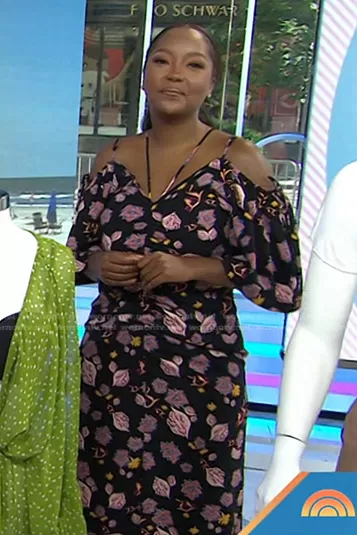 Makho Ndlovu on Today on NBC was spotted wearing this black floral midi dress on Today on Jun 20 2022's episode. Makho's Dress is the Sasha Dress by Hofmann Copenhagen.