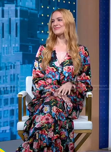 on Good Morning America on ABC was spotted wearing this black floral maxi dress on Good Morning America on Jun 21 2022's episode. 's Dress is the The Redeemer Dress by The Vampire's Wife.