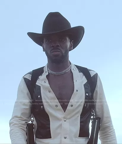 Tom Swift (played by Tian Richards) on Tom Swift on The CW was spotted wearing this white colorblock shirt on Tom Swift on episode '...And the Chocolate Cowboys' (1x04) in Jun 2022. Tom's Shirt is the Larry Two-Tone Shirt by Rick Owens.