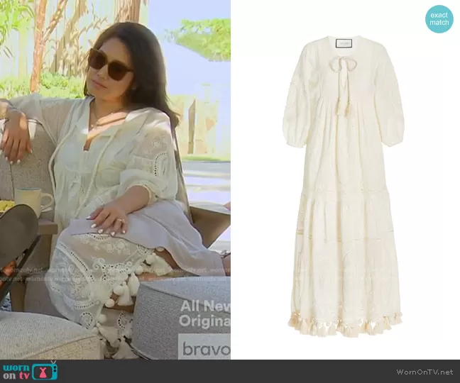 Crystal Kung Minkoff on The Real Housewives of Beverly Hills on Bravo was spotted wearing this white embroidered tassel dress on The Real Housewives of Beverly Hills on episode 'Ship-Faced' (12x07) in Jun 2022. Crystal's Dress is the Norah Dress by Alexis . Crystal's Sunglasses is the Lo Cell BC5 Oversized Square Sunglasses by Gentle Monster.