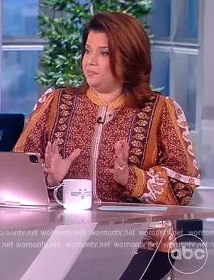 Ana Navarro on The View on ABC was spotted wearing this printed blouse on The View on Jun 23 2022's episode. Ana's Top is the Amy Printed Blouse by Kobi Halperin.