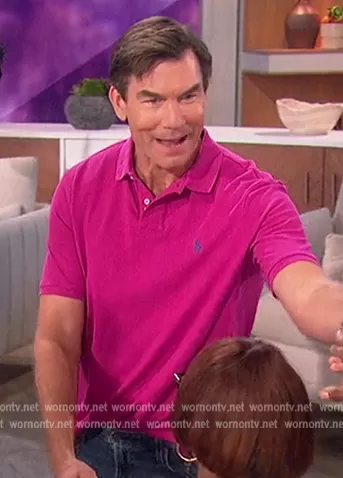Jerry O'Connell on The Talk on CBS was spotted wearing this pink polo on The Talk on Jun 23 2022's episode. Jerry's Shirt is the The Iconic Mesh Polo Shirt by Ralph Lauren.