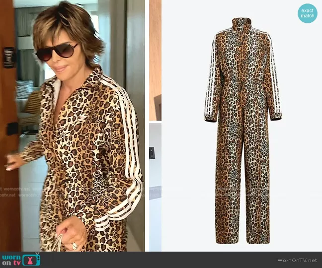 Lisa Rinna on The Real Housewives of Beverly Hills on Bravo was spotted wearing this leopard print jumpsuit on The Real Housewives of Beverly Hills on episode 'Ship-Faced' (12x07) in Jun 2022. Lisa's Jumpsuit is the Leopard Luxe Jumpsuit by Adidas . Lisa's Bag is the The Lily Canvas Weekend Jumbo Bag by Lily and Bean.
