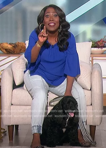 Sheryl Underwood on The Talk on CBS was spotted wearing this denim jogger on Jun 24 2022's episode. Sheryl's Pants is the Denim Joggers by INC International Concepts.