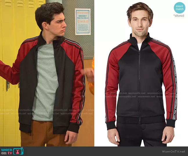 Neil (played by Felix Avitia) on Ravens Home on Disney was spotted wearing this red and black colorblock track jacket on Ravens Home on episode 'Truth or Hair' (5x12) in Jun 2022. Neil's Jacket is the Color-Block Tonal Logo Tape Track Jacket by Karl Lagerfeld Paris.