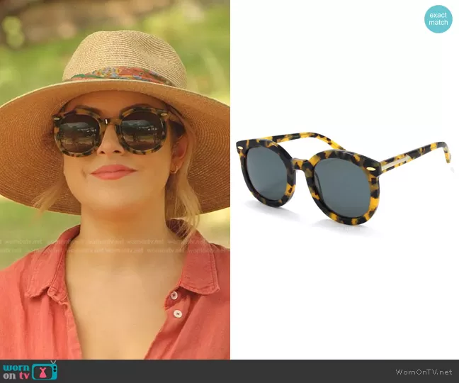 Fallon Carrington (played by Elizabeth Gillies) on Dynasty on The CW was spotted wearing this tortoise sunglasses on Dynasty on episode 'Ben' (5x15) in Jun 2022. Fallon's Sunglasses is the Super Duper Strength Sunglasses by Karen Walker.