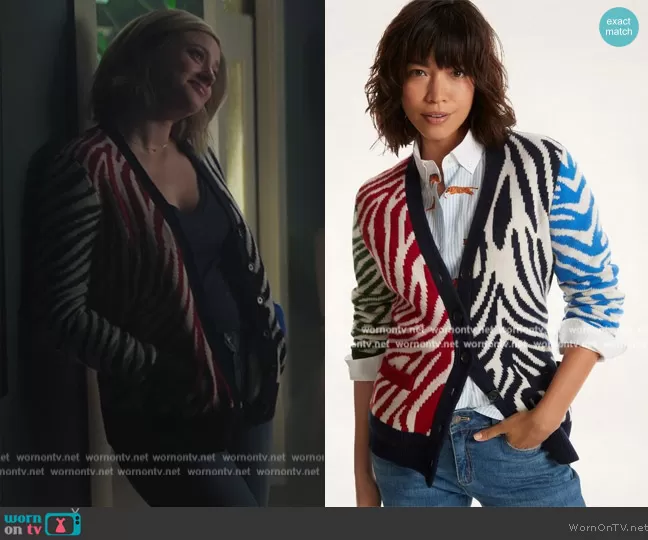Betty Cooper (played by Lili Reinhart) on Riverdale on The CW was spotted wearing this tiger stripe cardigan on Riverdale on episode 'Chapter One Hundred and Thirteen: Biblical' (6x18) in Jun 2022. Betty's Sweater is the Year of the Tiger Merino Wool Tiger Stripe Intarsia Cardigan by Brooks Brothers.