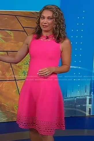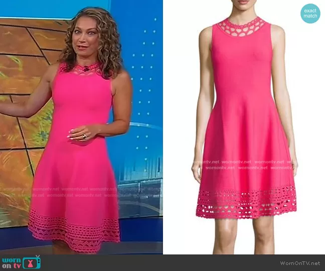 Ginger Zee on Good Morning America on ABC was spotted wearing this pink laser cut sleeveless dress on Good Morning America on Jun 27 2022's episode. Ginger's Dress is the Sleeveless Cutout Swing Dress by Milly.