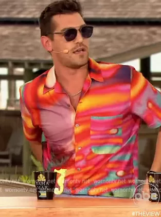 on The View on ABC was spotted wearing this tie dye print shirt on The View on Jun 28 2022's episode. 's Dress is the Raves Waves Short Sleeve Shirt by Paul Smith.