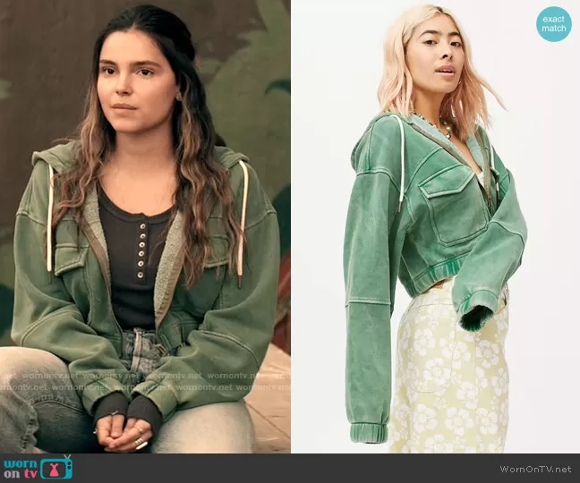 Natalie Lane Irons (played by Tayler Buck) on Superman and Lois on The CW was spotted wearing this green jacket on Superman and Lois on episode 'Waiting for Superman' (2x15) in Jun 2022. Natalie's Jacket is the Yogi Fleece Cropped Hoodie Sweatshirt by Urban Outfitters.