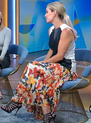 Dr. Jennifer Ashton on Good Morning America on ABC was spotted wearing this printed skirt and black cage sandals on Good Morning America on Jul 19 2022's episode. Jennifer's Skirt is the Floral Pleated Handkerchief Hem Skirt by Proenza Schouler . Jennifer's Shoes is the Caged Heeled Sandals by Jimmy Choo.