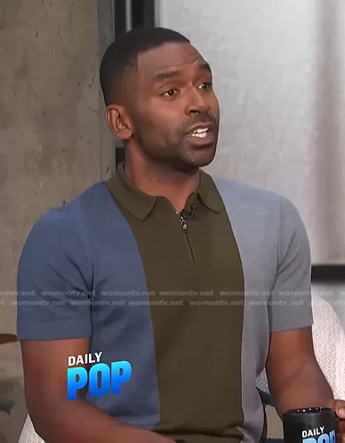 Justin Sylvester on E! News on E! was spotted wearing this colorblock polo shirt on E! News Daily Pop on Jun 30 2022's episode. Justin's Shirt is the Swansea Vertical Stripe Merino Wool Polo Sweater by Ted Baker.