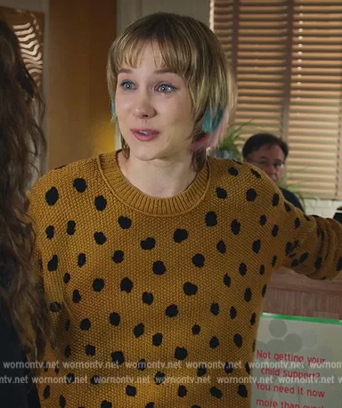 (played by ) on All Rise on OWN was spotted wearing this Spotted mustard sweater on All Rise on episode 'Trouble Man' (3x04) in Jun 2022. 's Sweater is the Painted Spots Pullover Sweater by Madewell.