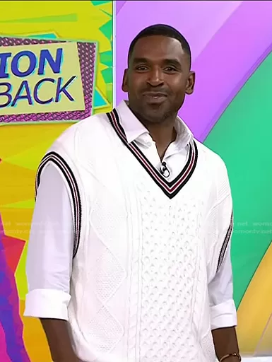 on Today on NBC was spotted wearing this white cable kit vest on Today on Jul 06 2022's episode. 's Sweater is the Cable Knit Tennis Vest in white by Abercrombie & Fitch.