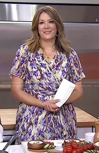 on Today on NBC was spotted wearing this abstract print wrap dress on Today on Jul 08 2022's episode. 's Dress is the Brittany Tiered Wrap Midi-Dress by Tanya Taylor.