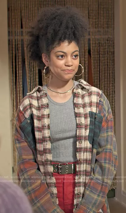 (played by ) on Maggie on Hulu was spotted wearing this mixed plaid shirt on Maggie on episode 'You Are A Skilled Mentor by Nature' (1x05) in Jul 2022. 's Top is the Kaden Mixed Plaid Button-Down Shirt by BDG at Urban Outfitters.