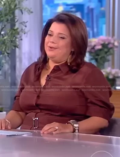 Ana Navarro on The View on ABC was spotted wearing this brown belted shirtdress on The View on Jul 11 2022's episode. Ana's Dress is the Pax Belted Stretch Silk Georgette Shirtdress by Lafayette 148 New York.