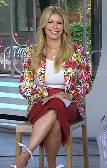 Jill Martin on Today on NBC was spotted wearing this floral blazer on Today on Apr 13 2023's episode. Jill's Jacket is the Chamberlain Floral Blazer by L'Agence . Jill's Shoes is the Clarita Leather Sandals by Alexandre Birman.