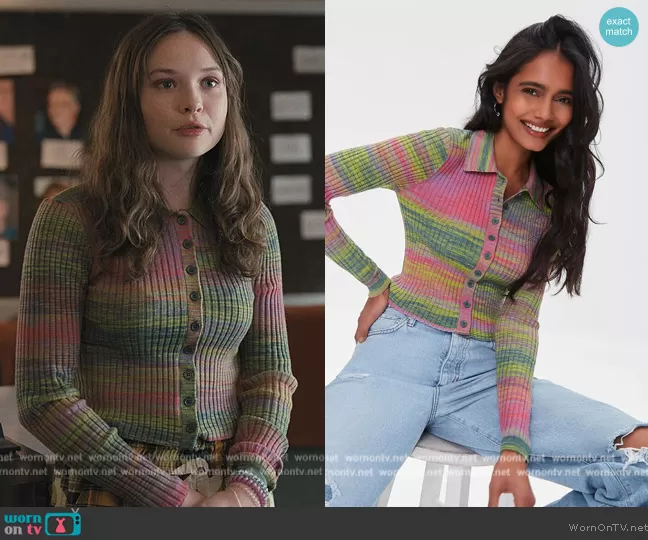 Lucy (played by Zoe Margaret Colletti) on Only Murders in the Building on Hulu was spotted wearing this space dye cardigan and pants on Only Murders in the Building on episode 'Here's Looking at You' (2x04) in Jul 2022. Lucy's Sweater is the Space Dye Cardigan Sweater by Forever 21 . Lucy's Pants is the Darren Flannel Pant by BDG.