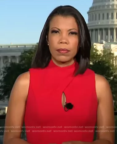 Nikole Killion on CBS Mornings on CBS was spotted wearing this red keyhole dress on CBS Mornings on Aug 15 2023's episode. Nikole's Dress is the Sleeveless Cross Sheath with Center Front Keyhole by Calvin Klein .