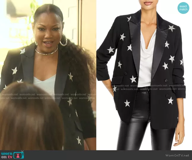 Garcelle Beauvais on The Real Housewives of Beverly Hills on Bravo was spotted wearing this black star blazer on The Real Housewives of Beverly Hills on episode 'So You Say' (12x10) in Jul 2022. Garcelle's Jacket is the Lila Mini Star Blazer by Cinq a Sept.