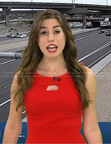on Good Morning America on ABC was spotted wearing this red cutout dress on Good Morning America on Jul 16 2022's episode. 's Dress is the Fitted Cocktail Dress by Joseph Ribkoff.