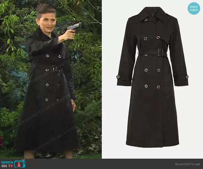 (played by ) on Days of our Lives on Peacock was spotted wearing this Megan’s black trench coat on Days of our Lives: Beyond Salem on Jul 16 2022's episode. 's Coat is the Classic Woven Trench Coat by Karen Millen.
