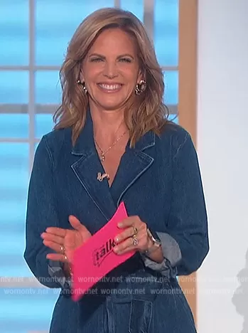Natalie Morales on The Talk on CBS was spotted wearing this denim belted jumpsuit on The Talk on Jul 19 2022's episode. Natalie's Jumpsuit is the Denim Blazer Jumpsuit by ASOS . Natalie's Shoes is the Pyraclou Sandals by Christian Louboutin.