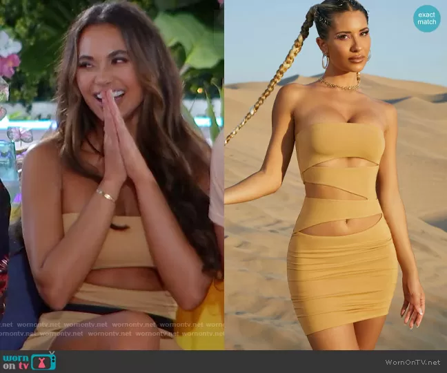 Courtney Boerner on Love Island USA on Peacock was spotted wearing this beige cutout dress on Love Island USA on episode 'Episode 1' (4x01) in Jul 2022. Courtney's Dress is the Martinez Dress by Oh Polly.