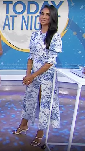 on Today on NBC was spotted wearing this blue floral slit dress on Today on Jul 20 2022's episode. 's Dress is the Carolena Dress in Pompadour by Reformation.