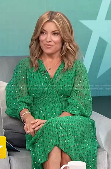 Kit Hoover on Access Hollywood on NBC was spotted wearing this green metallic print dress on Access Hollywood on Jul 20 2022's episode. Kit's Dress is the Cyana Dress by Ba&Sh.