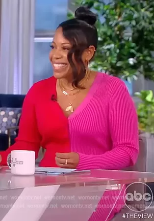 on The View on ABC was spotted wearing this pink colorblock dress on The View on Jul 22 2022's episode. 's Dress is the Shoko Sweater Dress by Staud.