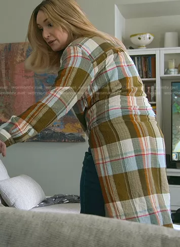 Davia (played by Emma Hunton) on Good Trouble on Freeform was spotted wearing this plaid long shirt on Good Trouble on episode 'Pick a Side, Pick a Fight' (4x12) in Jul 2022. Davia's Top is the Side-Slit Maxi Tunic Buttondown by Pilcro.