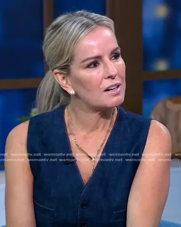 Dr. Jennifer Ashton on Good Morning America on ABC was spotted wearing this denim vest on Good Morning America on May 09 2023's episode. Jennifer's Vest is the Roland Denim Vest by Ralph Lauren . Jennifer's Shoes is the Caged Heeled Sandals by Jimmy Choo.