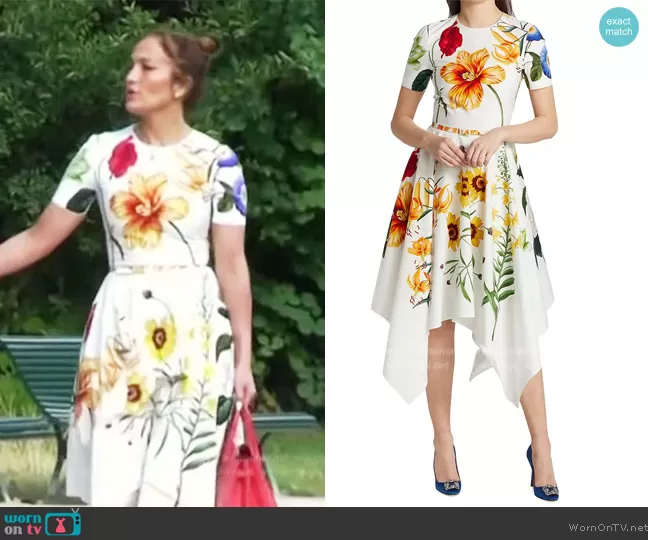Oscar de la Renta Floral Cotton Poplin Midi Dress worn by Jennifer Lopez on Extra