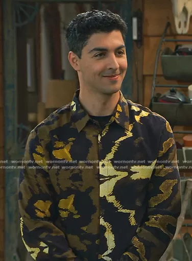 Parker Preston (played by Trevor Tordjman) on Bunkd on Disney was spotted wearing this brown snake print shirt on Bunkd on episode 'A Recipe for Disaster' (6x07) in Jul 2022. Parker's Shirt is the Long Sleeve Viscose Snake Shirt by Boohoo.