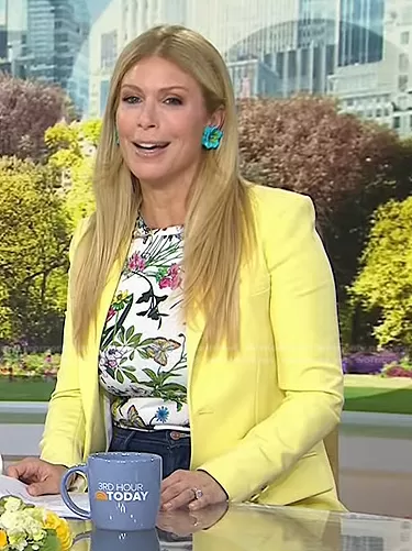 Jill Martin on Today on NBC was spotted wearing this white floral tee and yellow blazer on Today on Jul 27 2022's episode. Jill's Top is the Ressi Tee by L'Agence . Jill's Jacket is the Lyndon Single-Button Jacket by A.L.C..