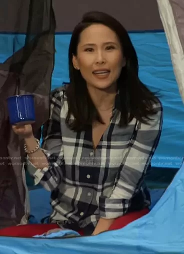 Vicky Nguyen on Today on NBC was spotted wearing this navy plaid button down shirt on Today on Sep 21 2023's episode. Vicky's Top is the Plaid Flannel Shirt by J. Crew.